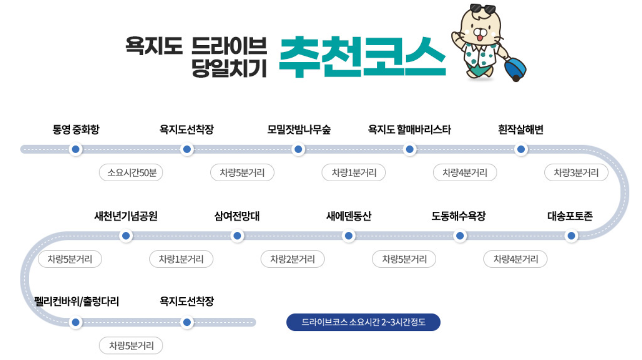 대중교통: 욕지도에는 버스가 운영되지만, 배 도착 시간에 맞춰 일부 구간만 운행되므로 차량을 가져가는 것이 더 편리할 수 있습니다.