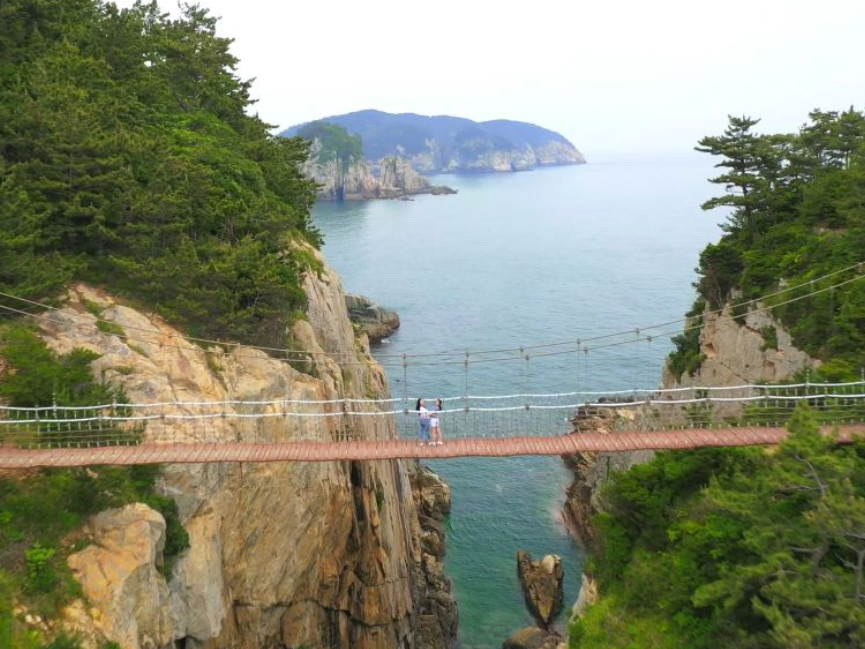 욕지도의 대표적인 랜드마크인 출렁다리는 탁 트인 바다를 배경으로 짜릿한 경험을 선사하는 명소입니다. 높이가 꽤 높아 도전적인 재미를 느낄 수 있어요.