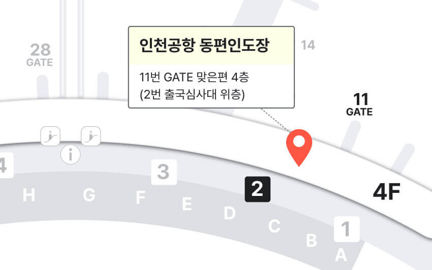 동편 인도장: 2번 출국심사대 위층 4층, 11번 게이트 근처