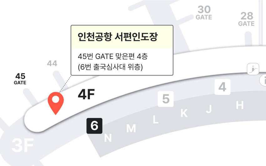 서편 인도장: 6번 출국심사대 위층 4층, 45번 게이트 근처