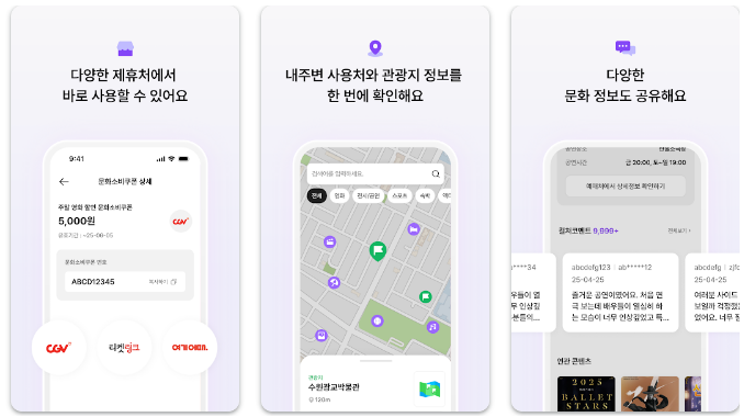 연극, 뮤지컬, 영화, 전시회는 물론, 카페, 서점, 스포츠 경기까지— 문화와 관련된 다양한 활동을 할인 또는 포인트로 지원해주기 때문에, 문화생활의 벽을 확 낮춰주는 제도랍니다.