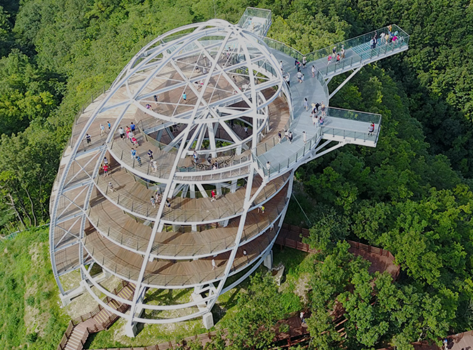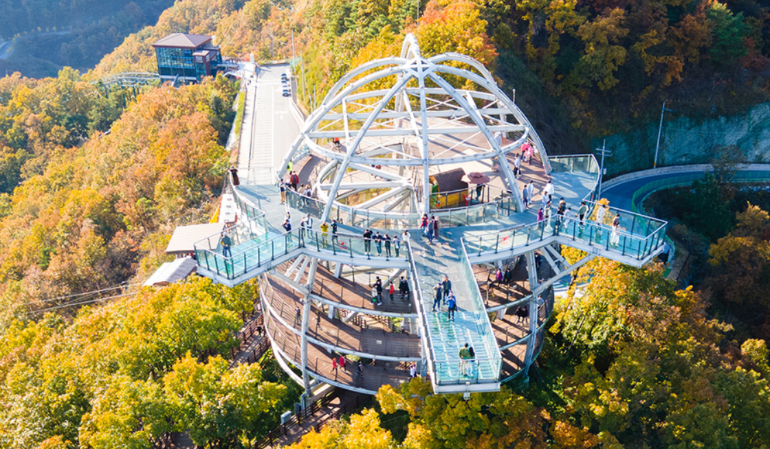 스카이워크 입구에서 정상까지는 도보도 가능하지만, 더 편하게 오르고 싶다면 모노레일을 이용하세요. 특히 가족 단위 방문객이나 어르신에게 인기가 많습니다.