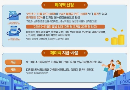 상생페이백 환급은 전년도 카드 월평균 사용액 대비 2025년 9~11월 증가분의 20%를 돌려주는 방식입니다.